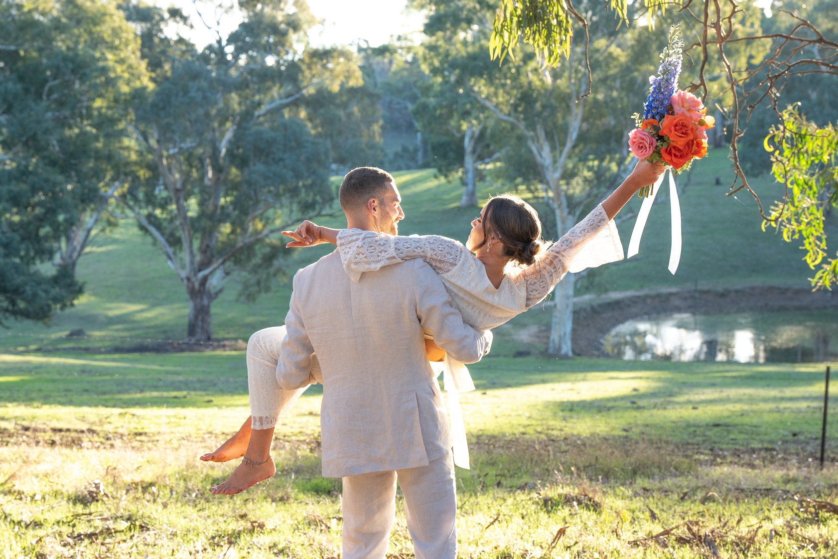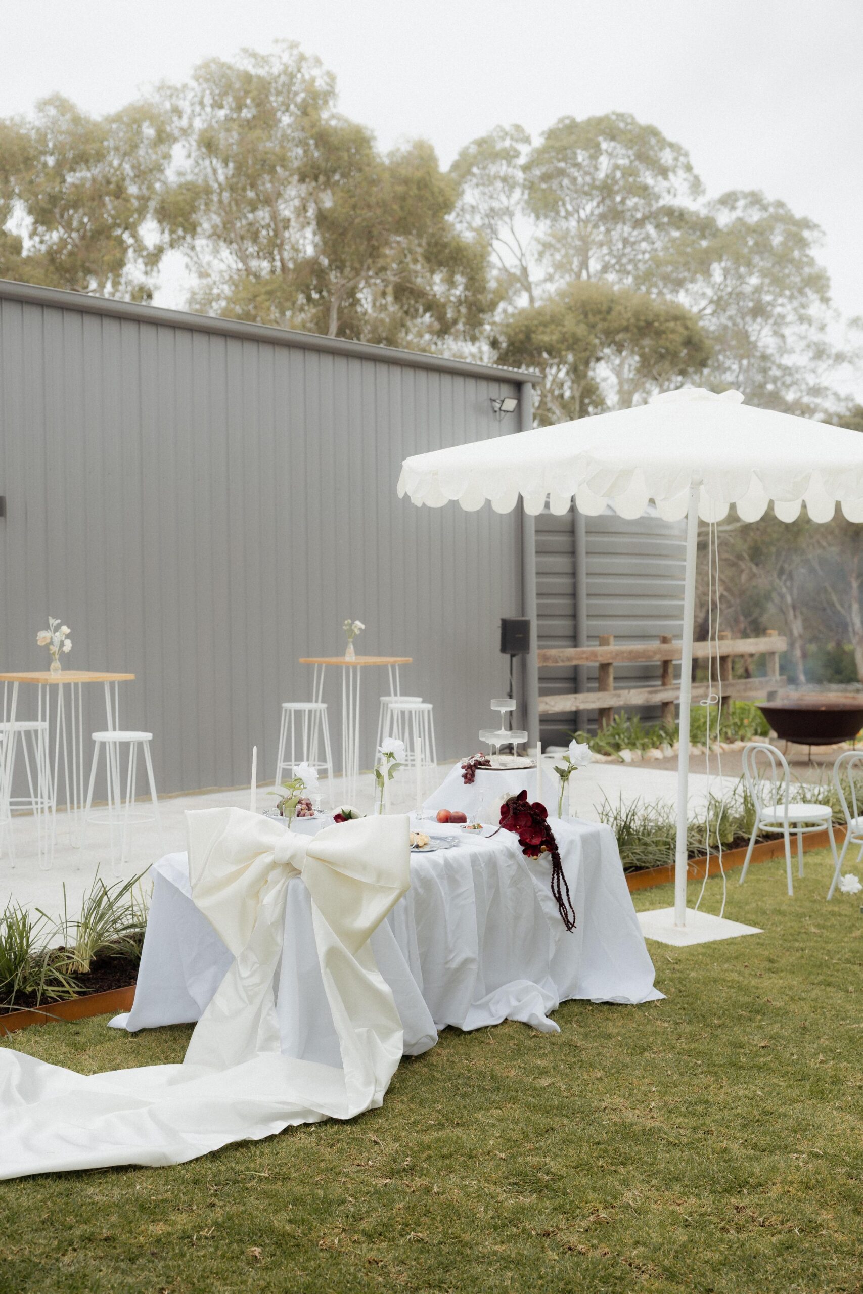 Less than 200 metres walk from the entrance down a white gravel drive is ‘The Woodlot’. Littered in big gums, the 2 acre gently sloping paddock overlooks the meadows and dam. It provides a romantic setting for a shaded ceremony or a mystical location for a reception. This space has us dreaming of giant tipis, strings of festoon lights, vintage rugs, folk music and assorted seating yet it holds so much possibility and could also easily suit a formal affair.
