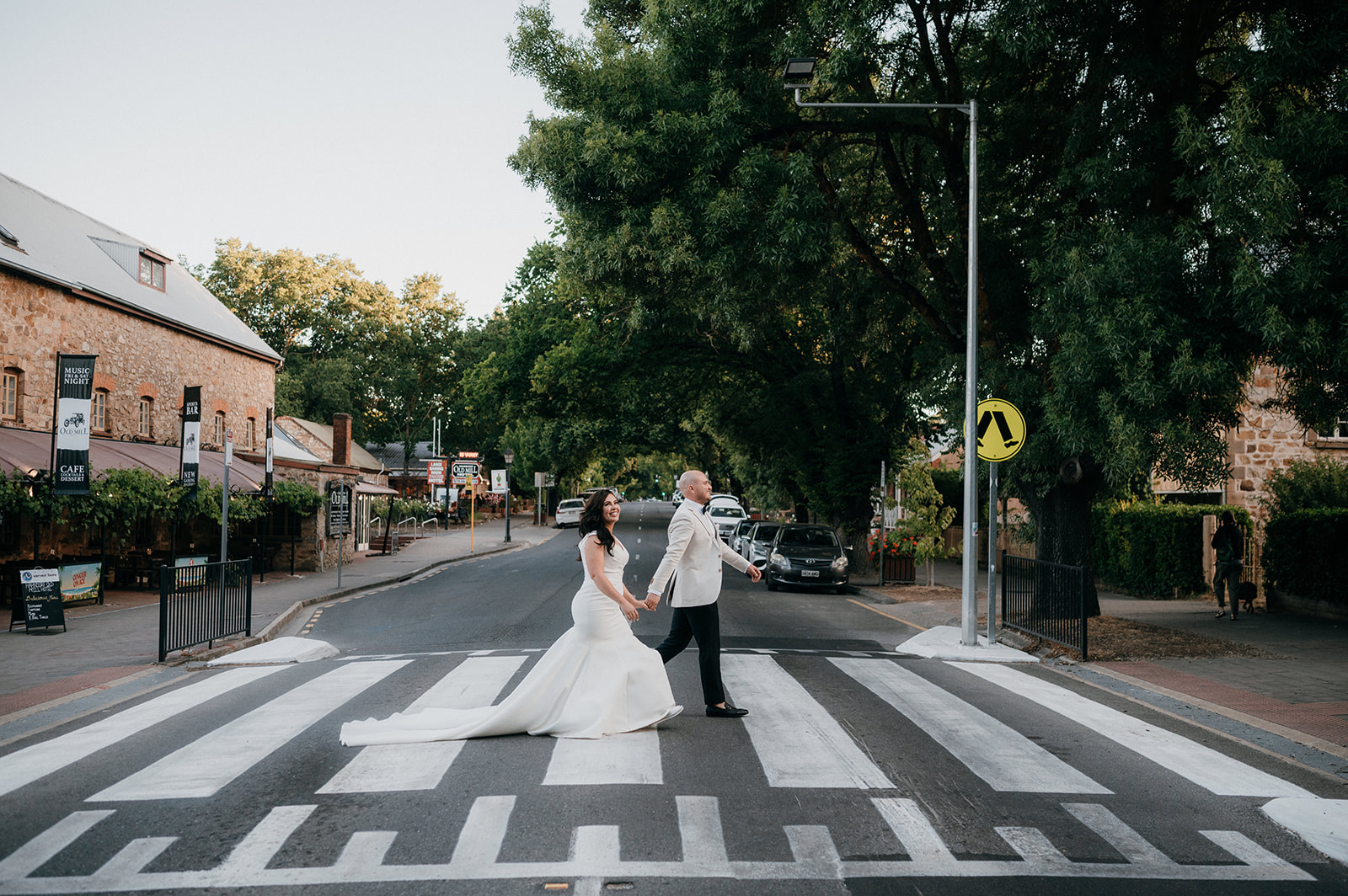 Follow the path down to the symmetrical cottage garden, which is centred around a fountain and is filled with colourful flowers, fragrant herbs and fruit trees, which provide shade and shelter. While there is no need to travel further for your couple portraits, you only have to stroll up the street to capture some of Hahndorf’s unique heritage architecture.