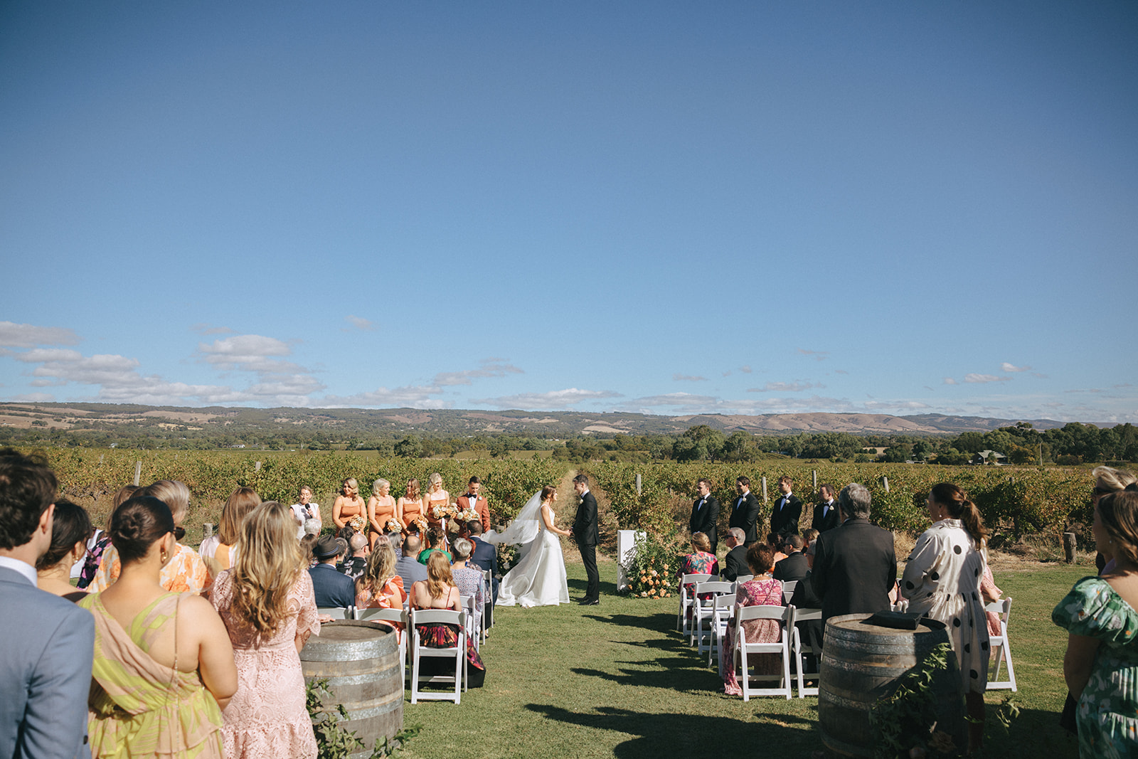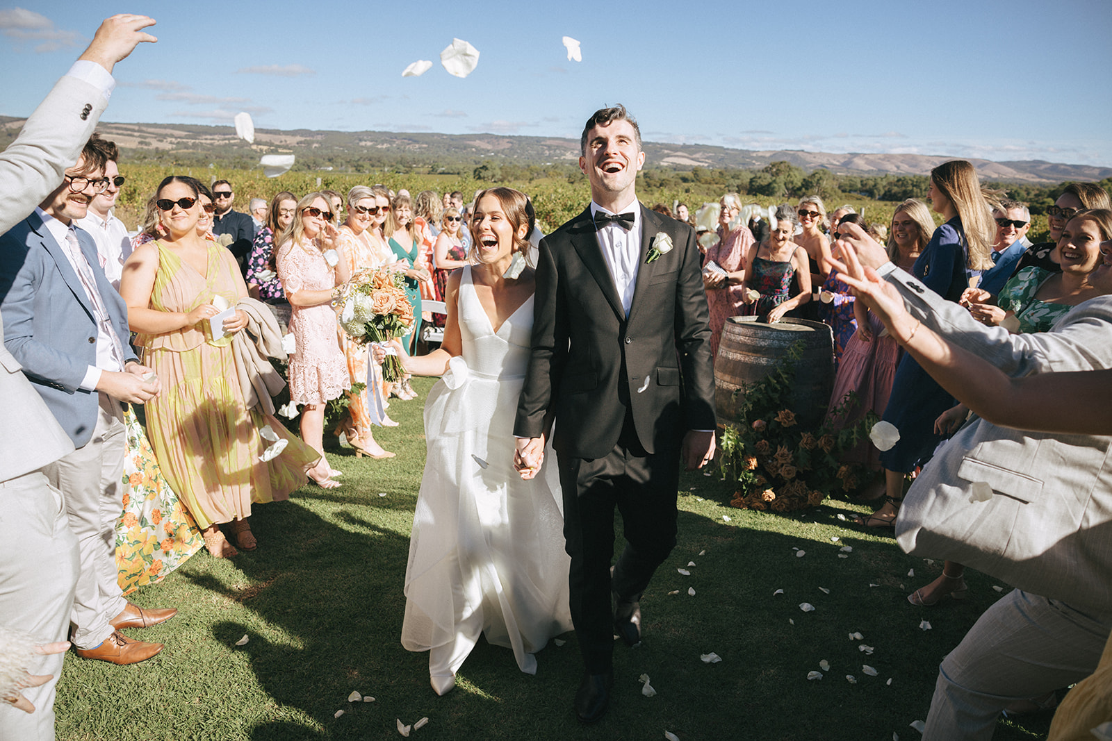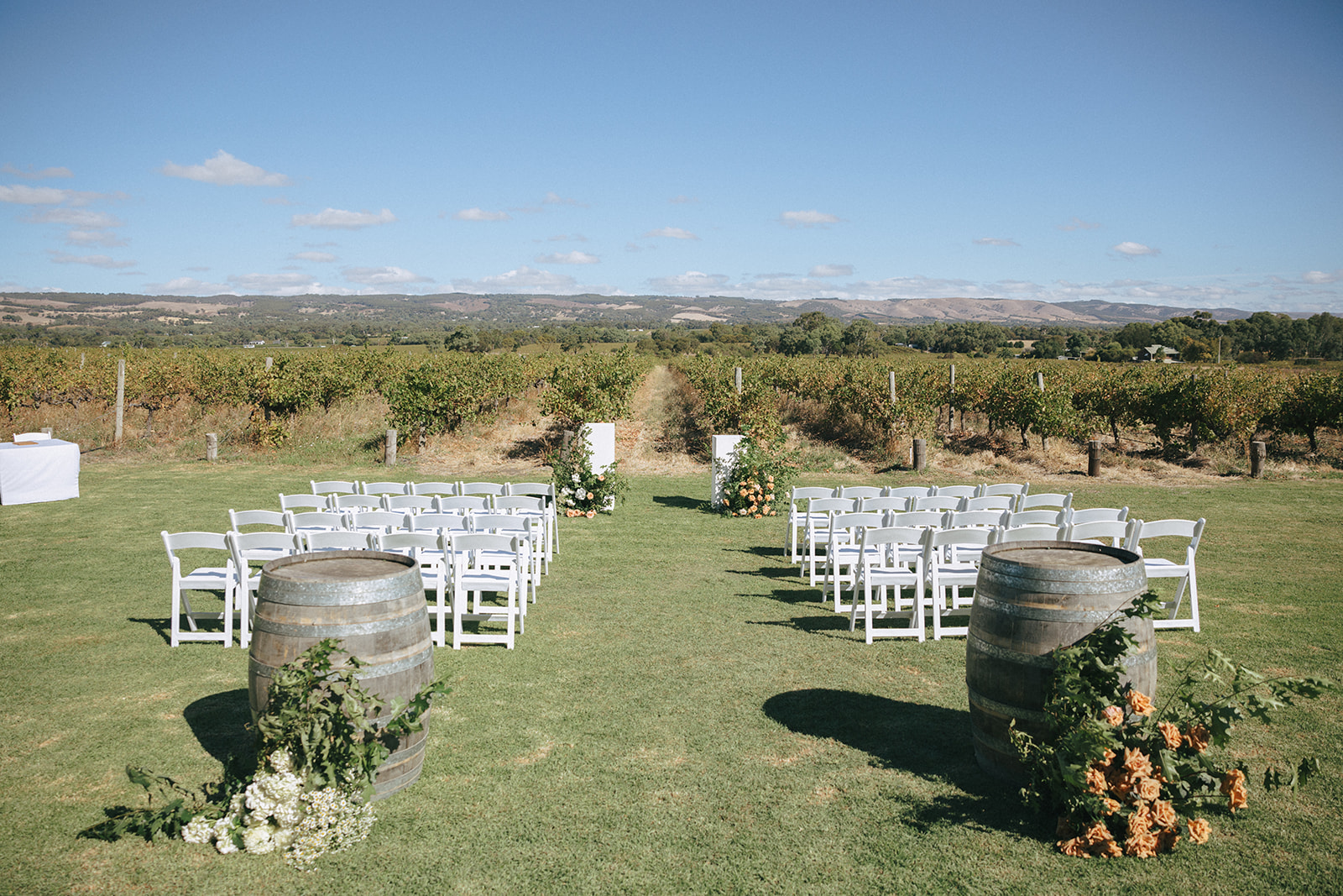 Say your vows on the lawns that flow between the vines and the restaurant, framed by golden light and rolling hills. With the vines as your aisle and the ranges as your backdrop, it is a setting that feels made for romance. From there, step into the enclosed courtyard, a sophisticated indoor and outdoor space with festoon lighting, paved floors and ceiling fans for comfort year-round. Neutral tones and natural textures allow you to style the space your way, from minimalist elegance to lavish floral installations.