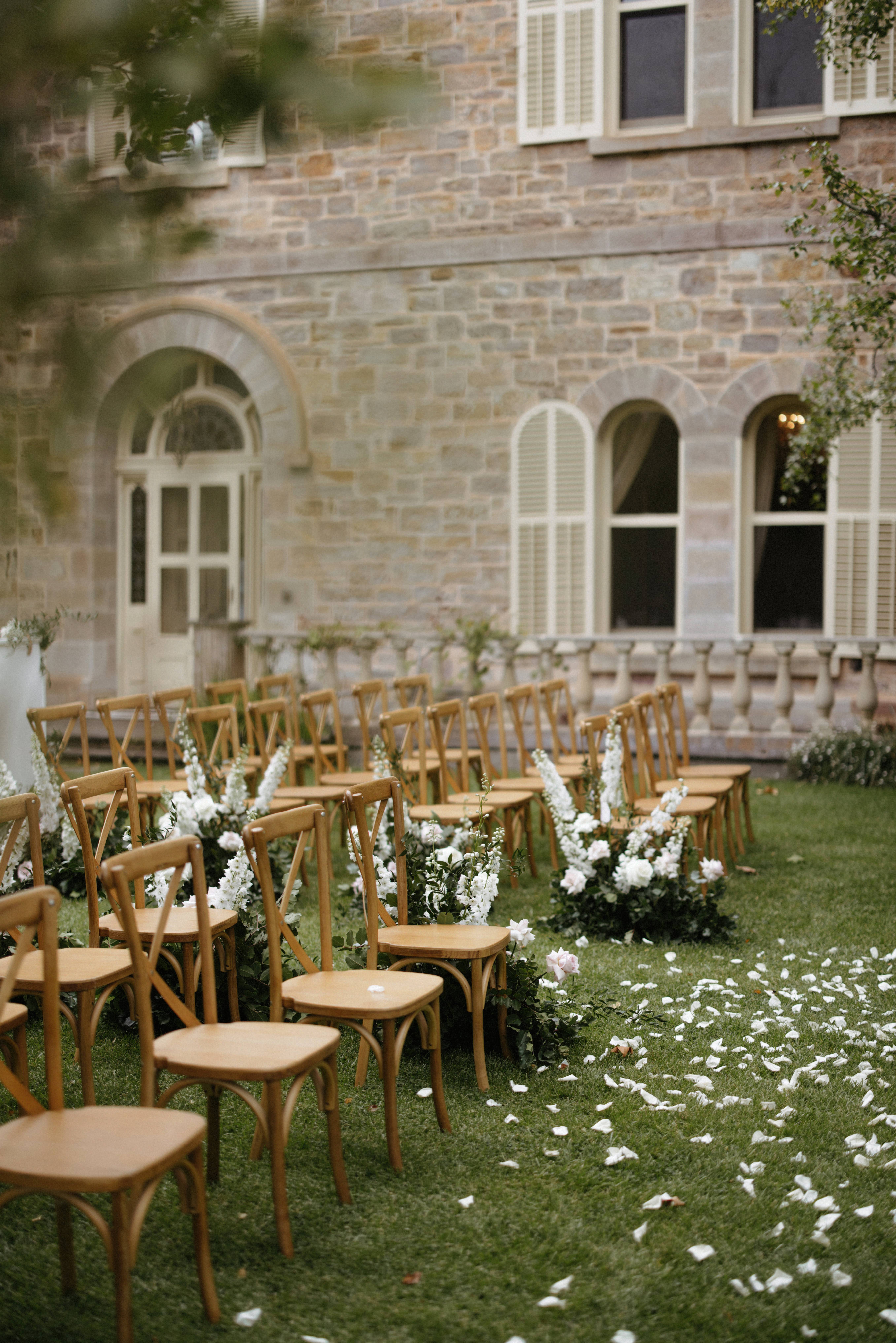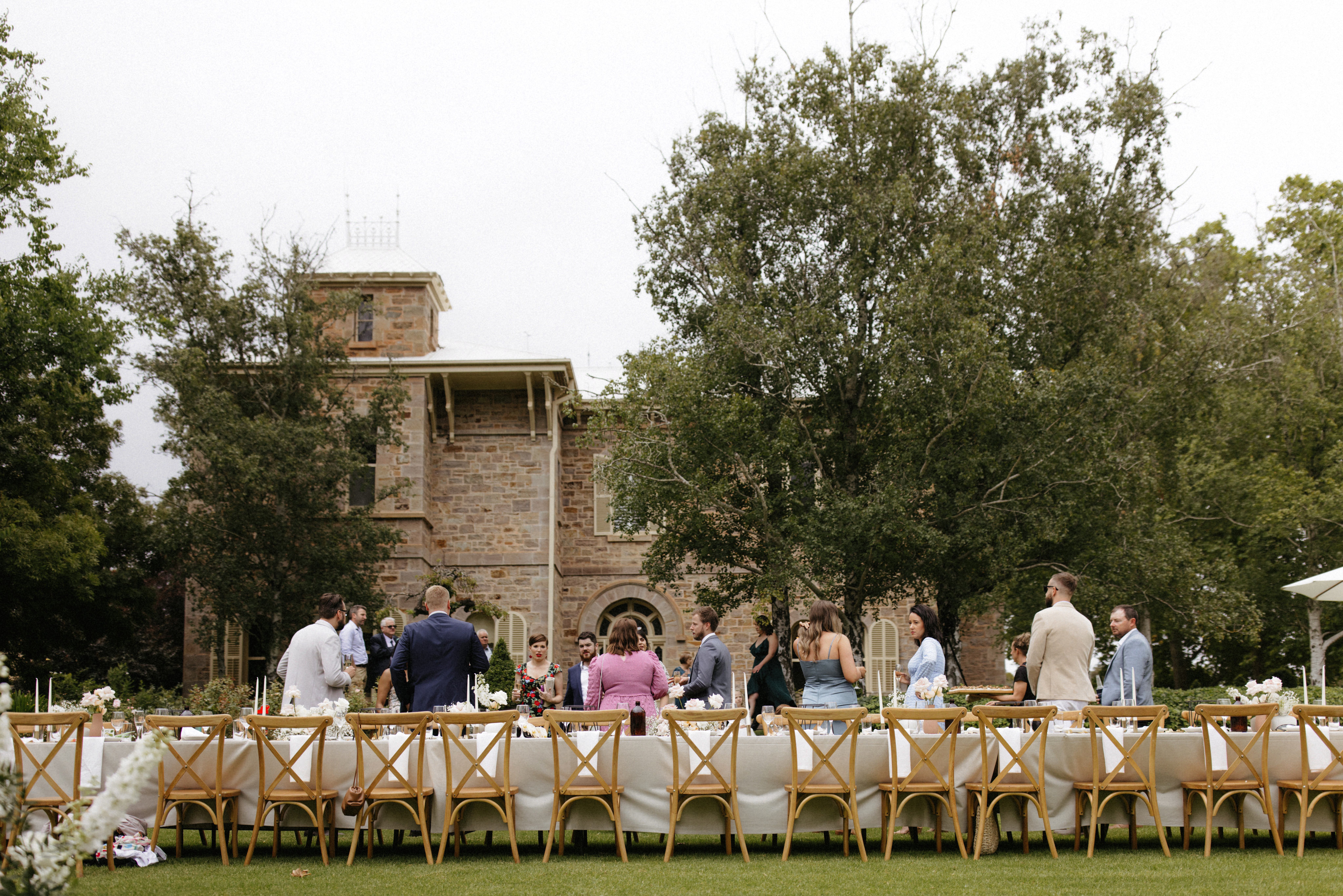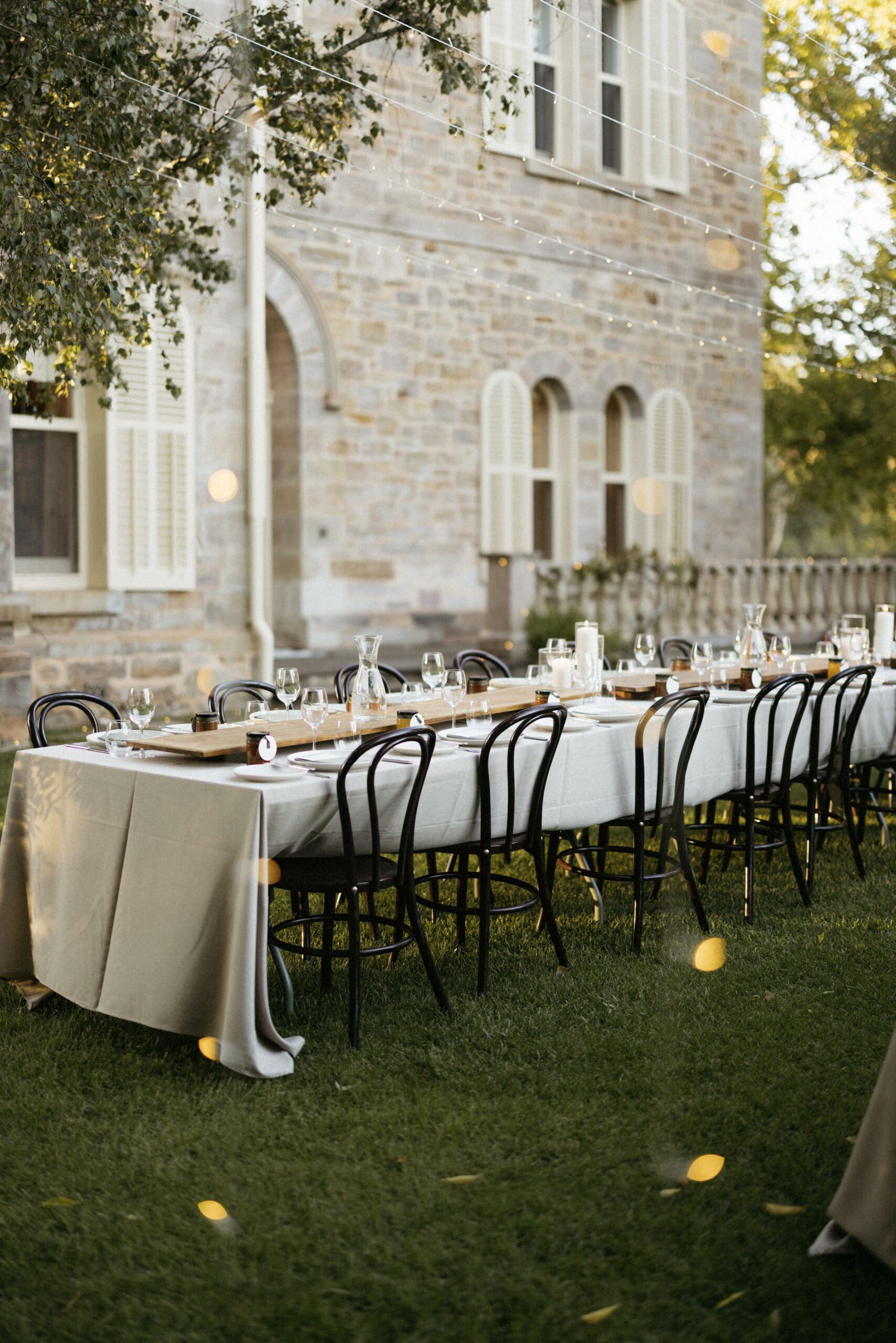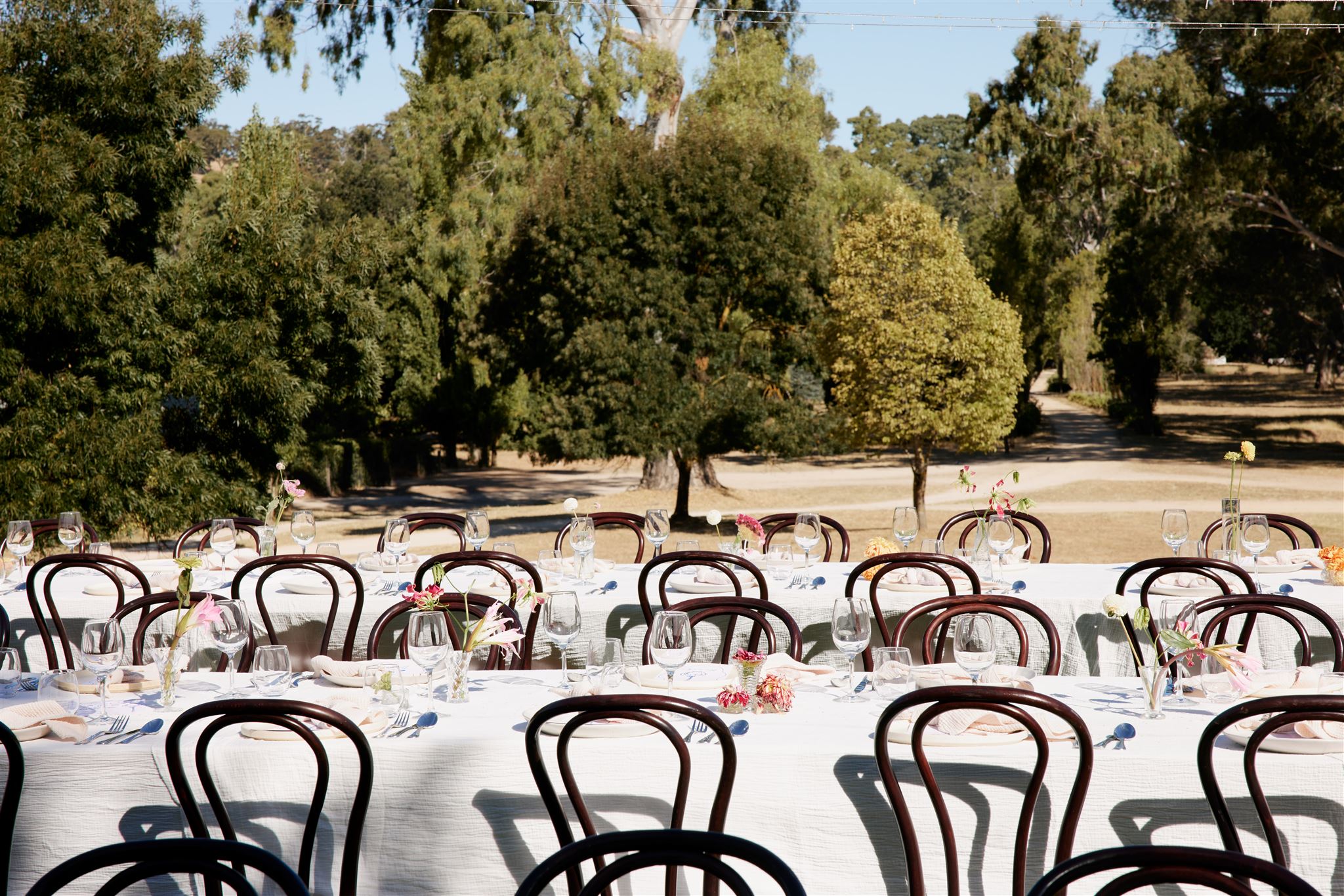 Hughes Park homestead is surrounded by a beautifully manicured English garden, and the spacious lawns beside the homestead are an ideal location for a ceremony or marquee. In addition to the formal gardens, the property also has native gums and scenic vineyard views, the ideal setting for you and your guests to enjoy authentic country hospitality. Picture a huge clear marquee, draped with beautiful florals and long rows of recycled timber tables, set against the stunning native backdrop at Hughes Park.
