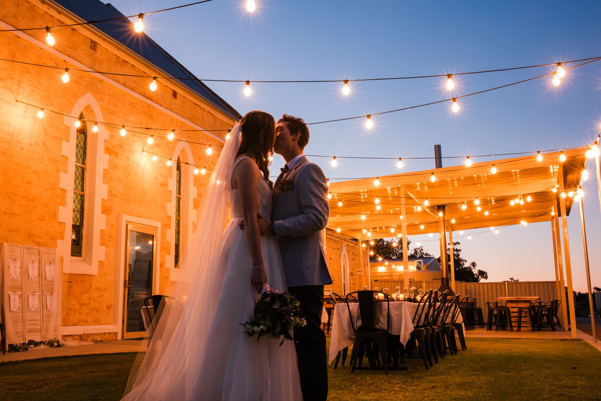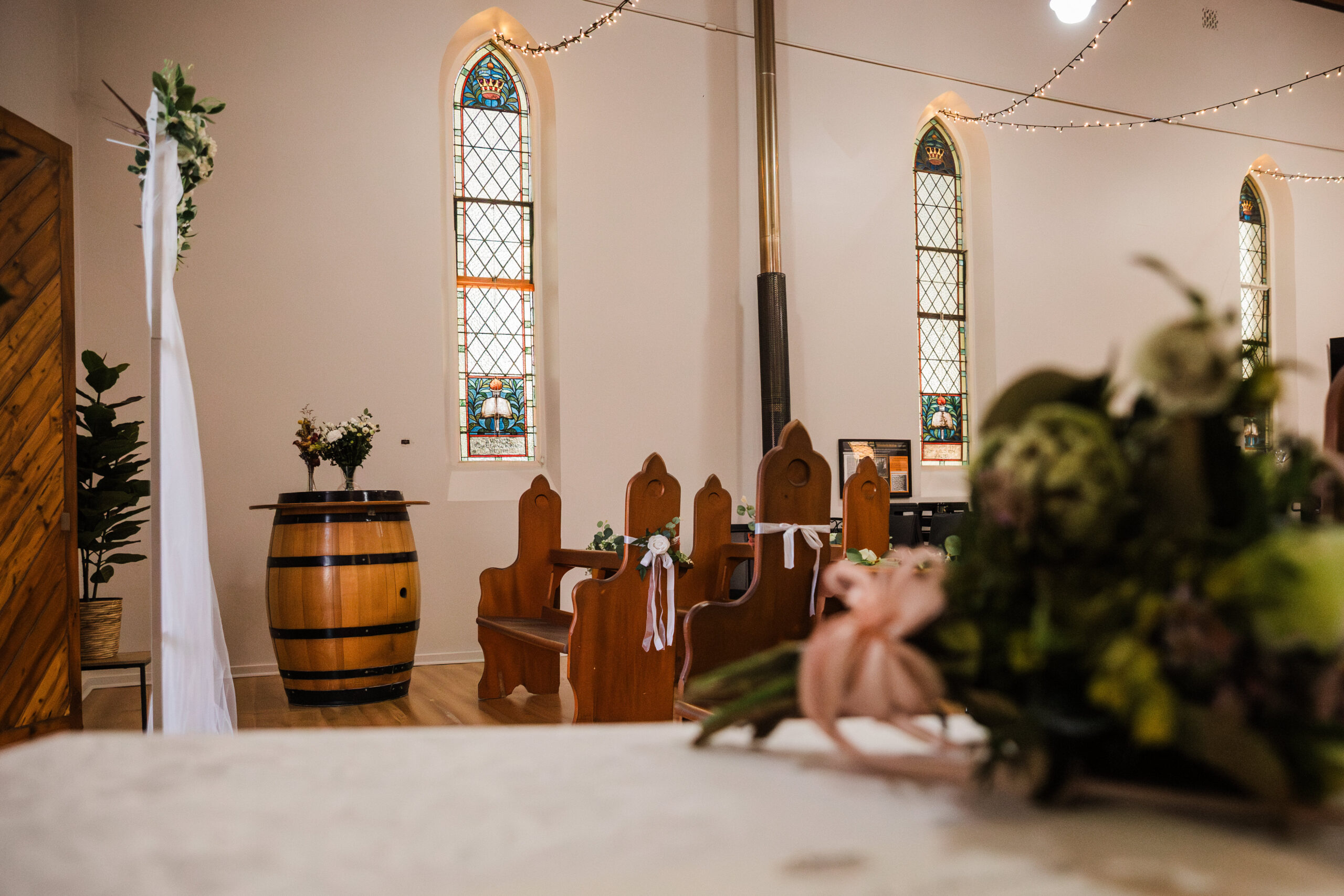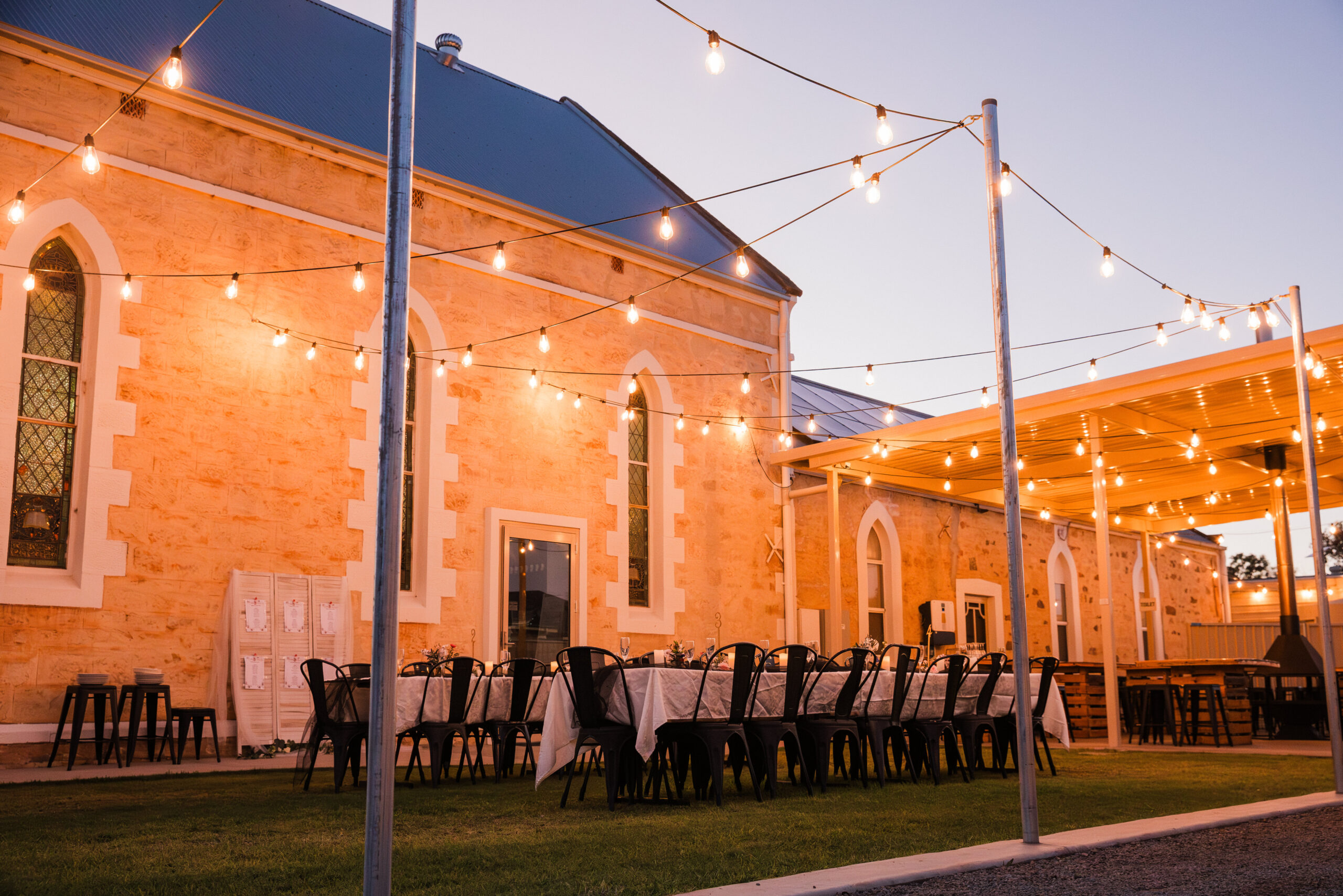 This beautifully restored circa-1875 building offers a warm and inviting atmosphere featuring soaring ceilings, original stained-glass windows and panelled-timber front doors. During winter, guests can keep warm by the slow combustion fire. It’s the kind of venue that captures hearts from the moment you step inside.