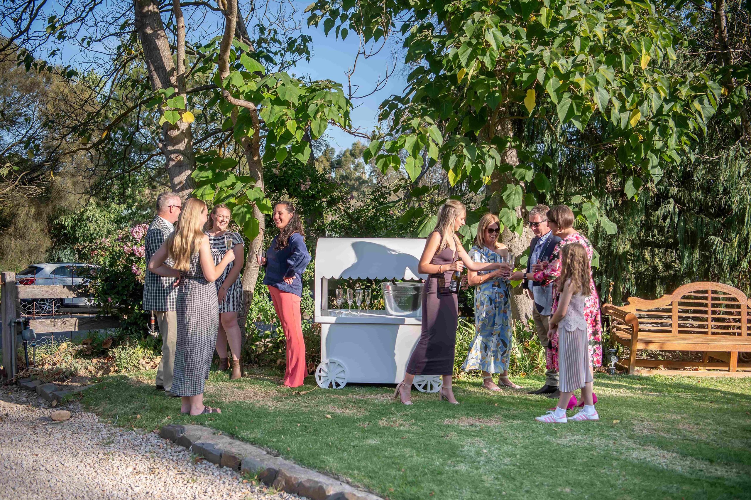 The Barn is the central feature of the property and is a perfect space for a large formal seated reception or relaxed cocktail function. This space has been lovingly restored by hand using exotically sourced recycled materials, but still retains many original features including original stonework, floorboards and corrugated iron. The fully insulated Barn boasts beautiful high ceilings highlighted by three gorgeous chandeliers, vintage etched glass windows, a free-standing bar, open kitchen and a state-of-the-art Al Forno pizza oven. The kitchen area has extensive bench space and refrigeration, perfect for caterers.