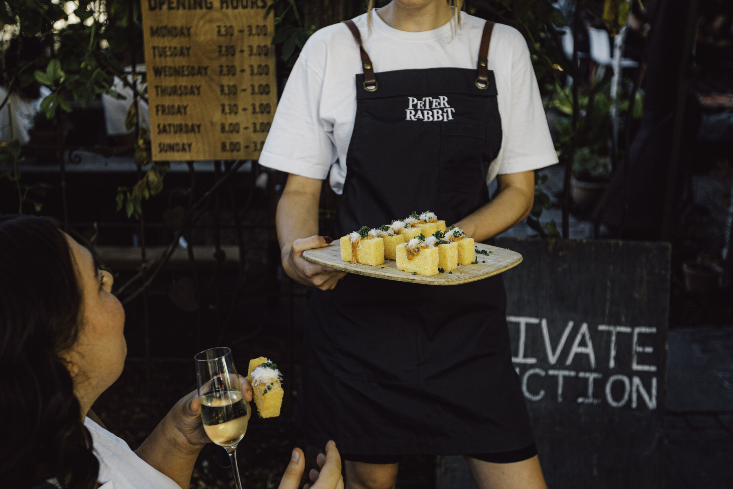 Whether you’re after a sit-down dinner or cocktail party Peter Rabbit’s seasonal menu offers exquisitely presented canapés, shared feasts and extravagant grazing boards to make your wedding reception a feast to remember.