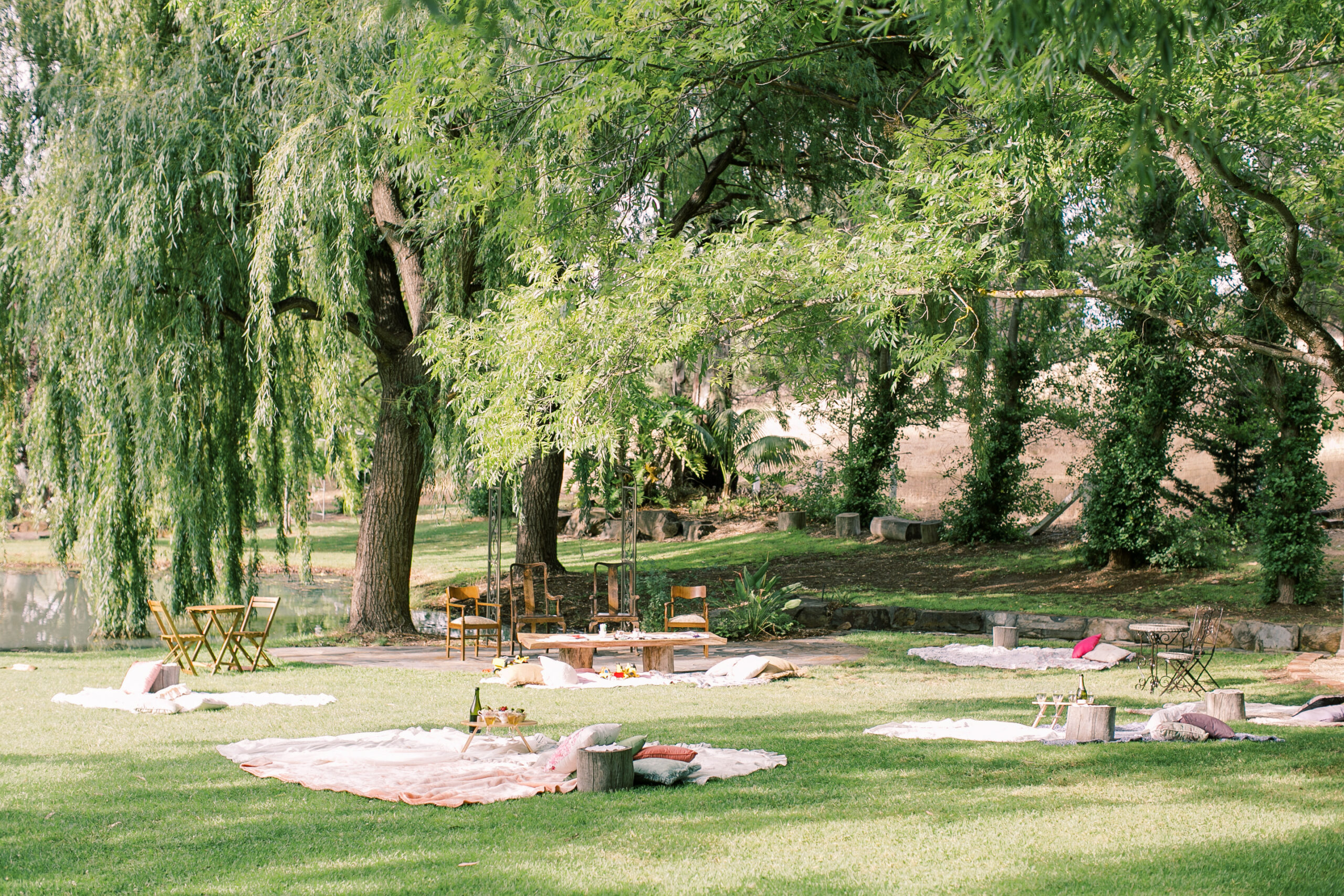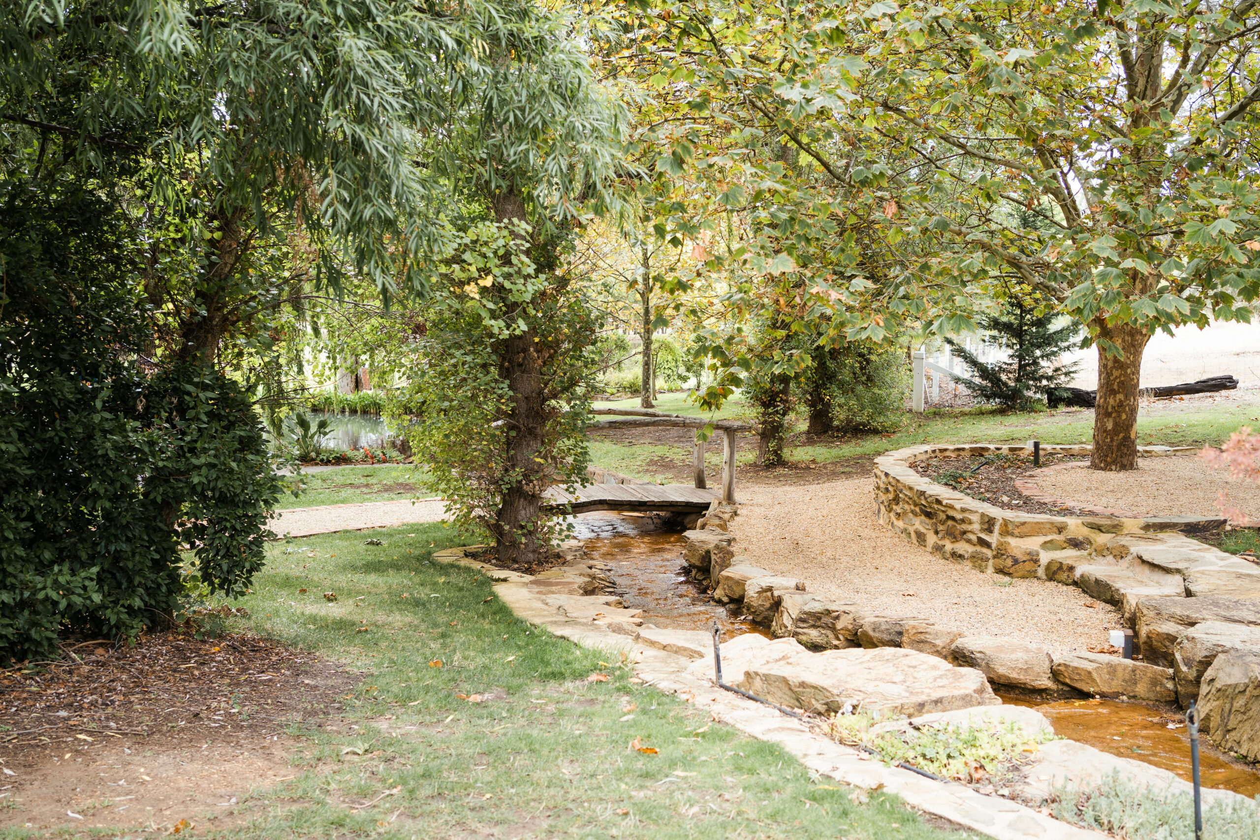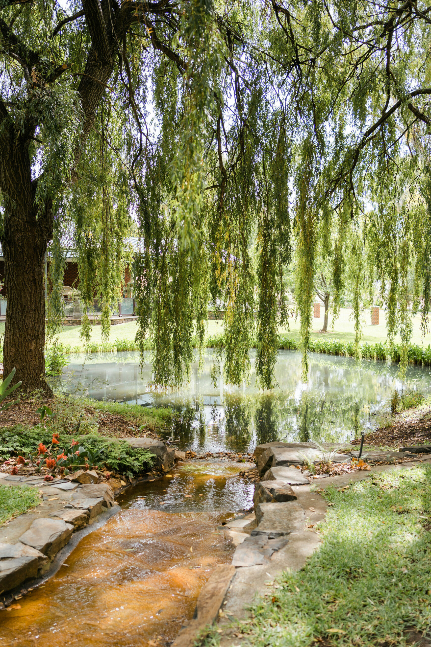Stevens Estate is an 8 hectare property and at its centre is a little oasis, surrounded by lush green gardens, big Willow trees, and overlooking a tranquil spring-fed lake. Come Autumn, the garden is teeming with colour, shades of red and gold provide the most stunning backdrop.