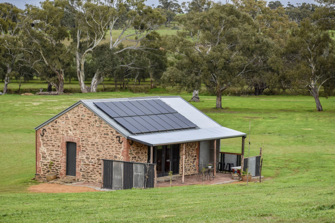 Across the field is Stoney Creek Estate’s quaint stone cottage, which was once the home to the founder of the property and his family. Dating back to 1857, this cosy cottage has been lovingly renovated with a modern country charm. Featuring vaulted ceilings, a breakfast alfresco, ensuite with large double shower, vintage outdoor bath, kitchenette, and second to none views of the rural landscape beyond.