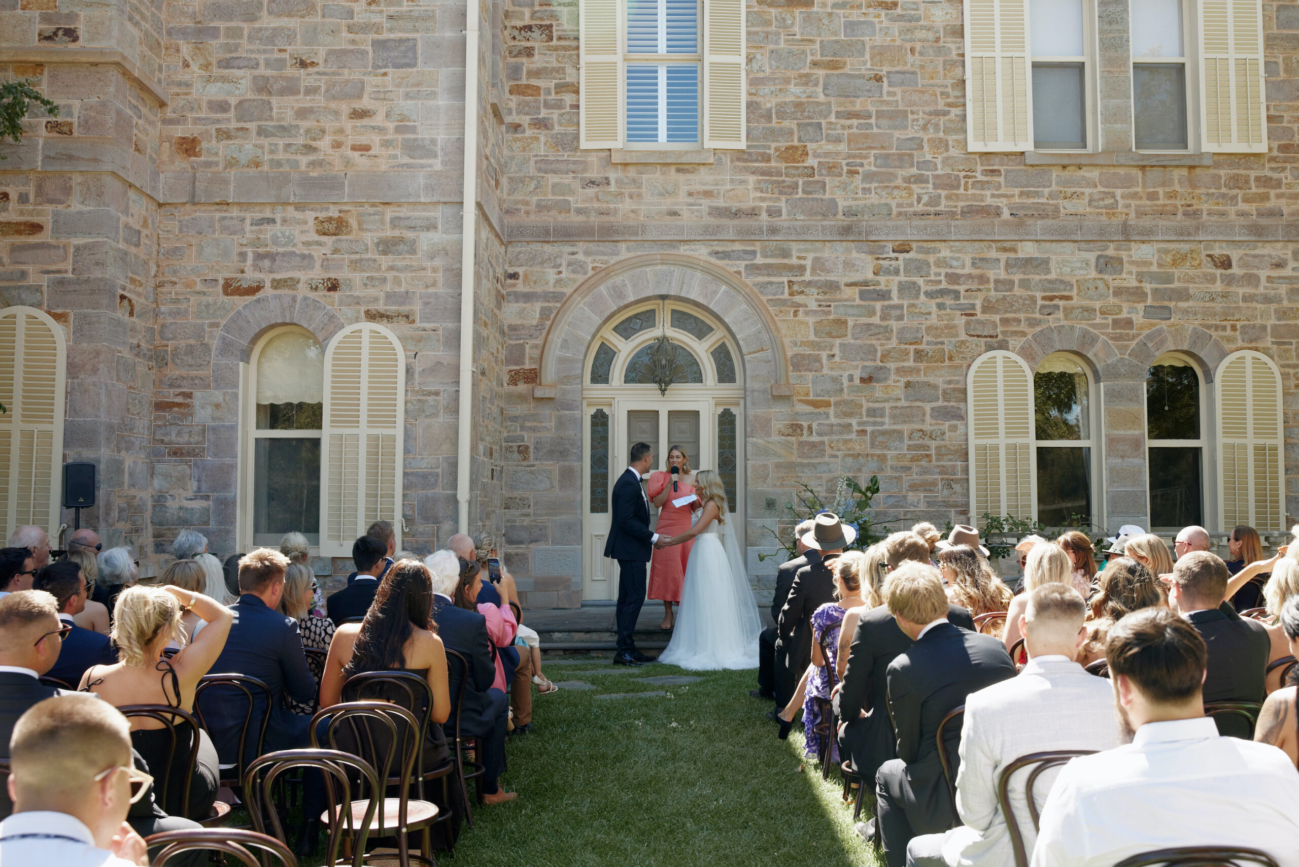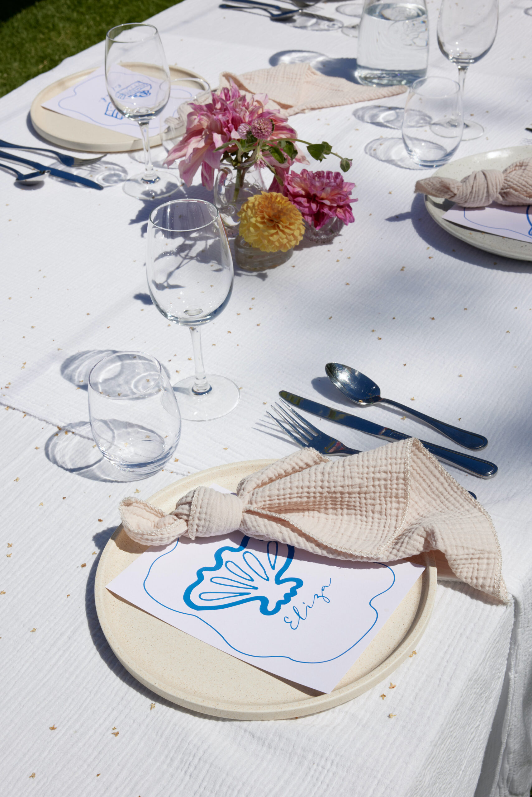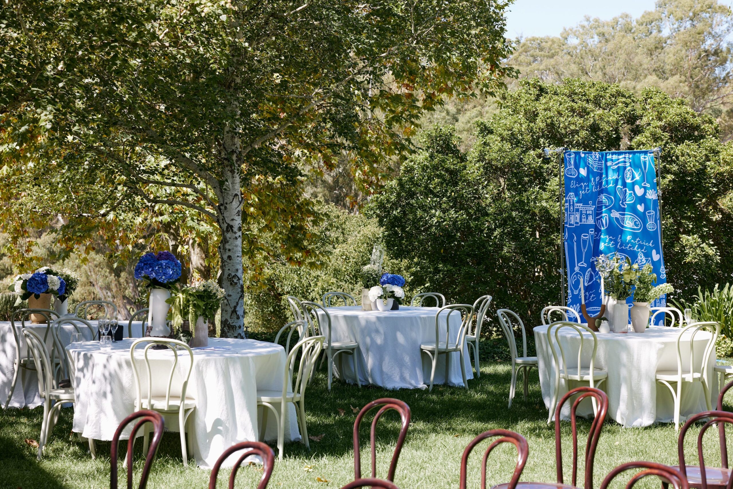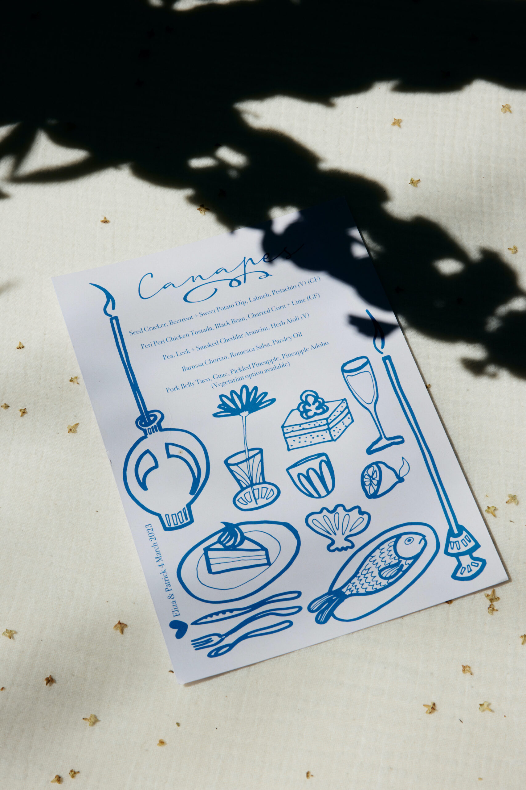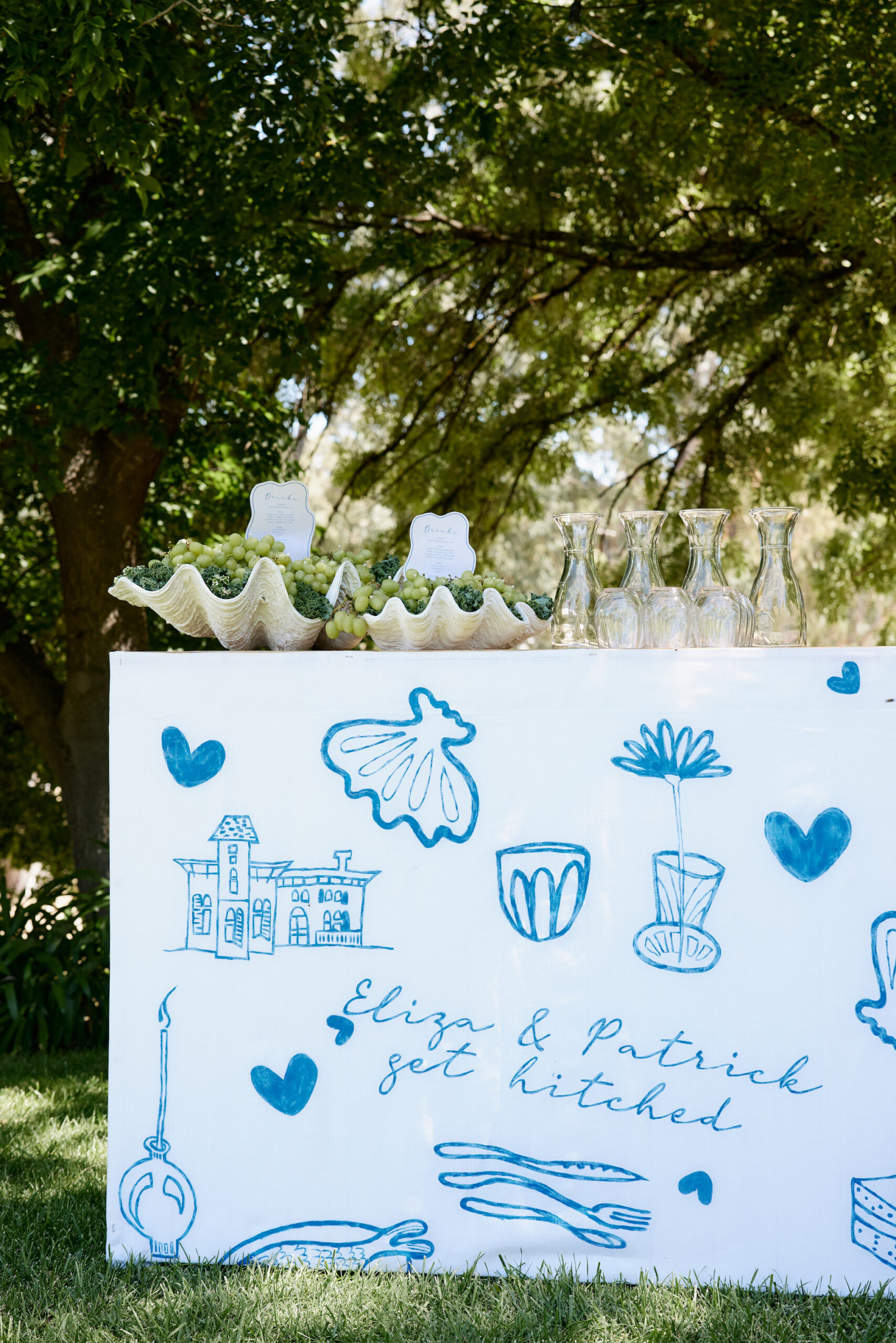Our favourite detail, however, is the special part that Eliza’s mum Carollyn played in their day. A talented graphic designer and artist based in Adelaide, she designed all the fun blue artwork, stationery and custom signage used throughout their wedding and around the venue. If you look close enough, you’ll notice the unique design features a sketch of Hughes Park’s iconic homestead, what a thoughtful touch!