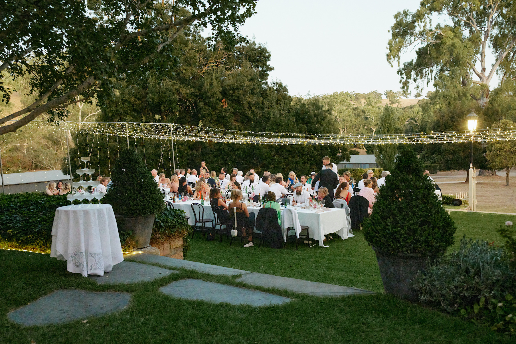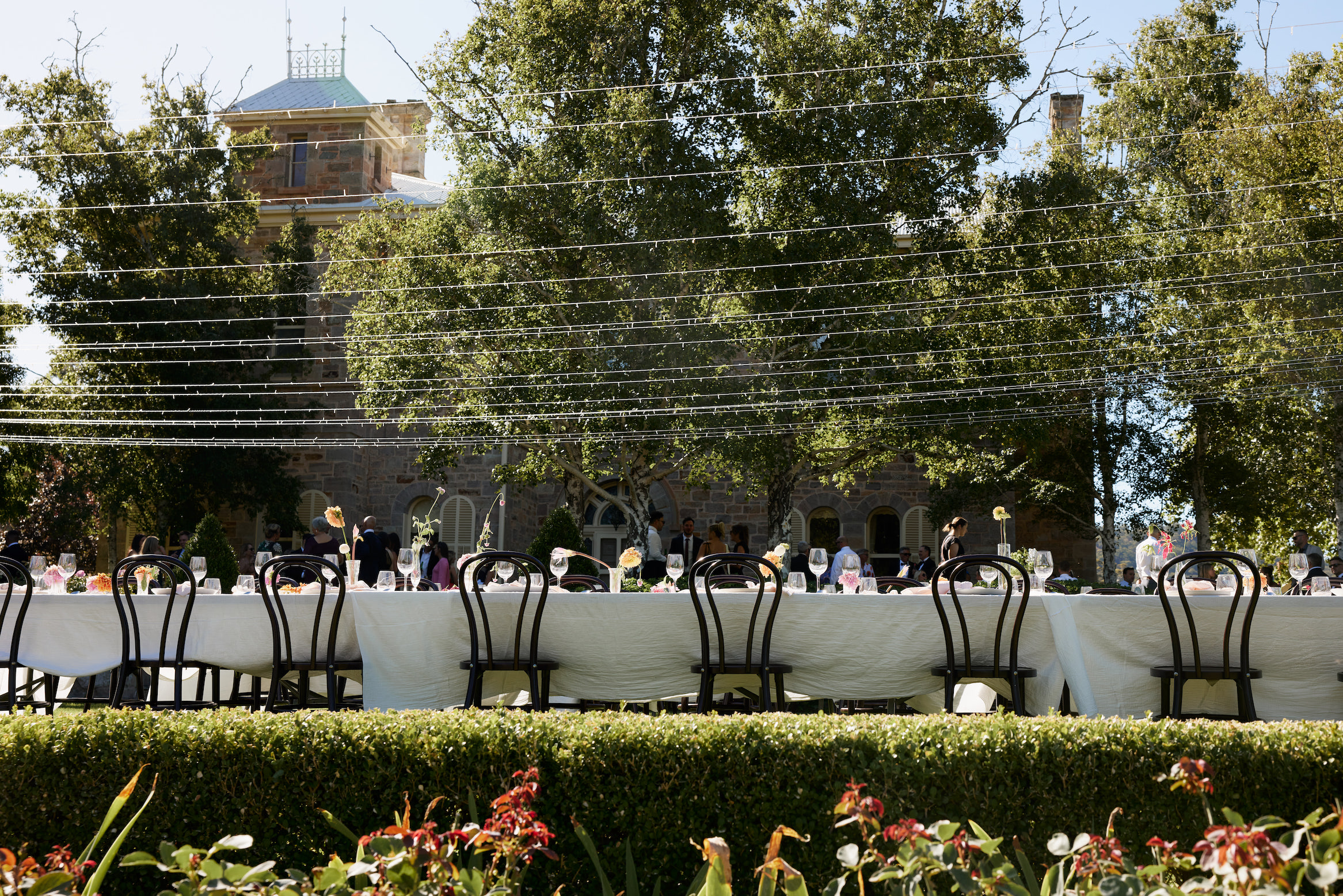 We had a chat with E & P about their glamorous country estate wedding at Hughes Park. The beverages and catering were selected from local Clare Valley suppliers, which unsurprisingly the guests raved about, and we think they would have been equally impressed by that epic light canopy installation by Mid North Party Hire.